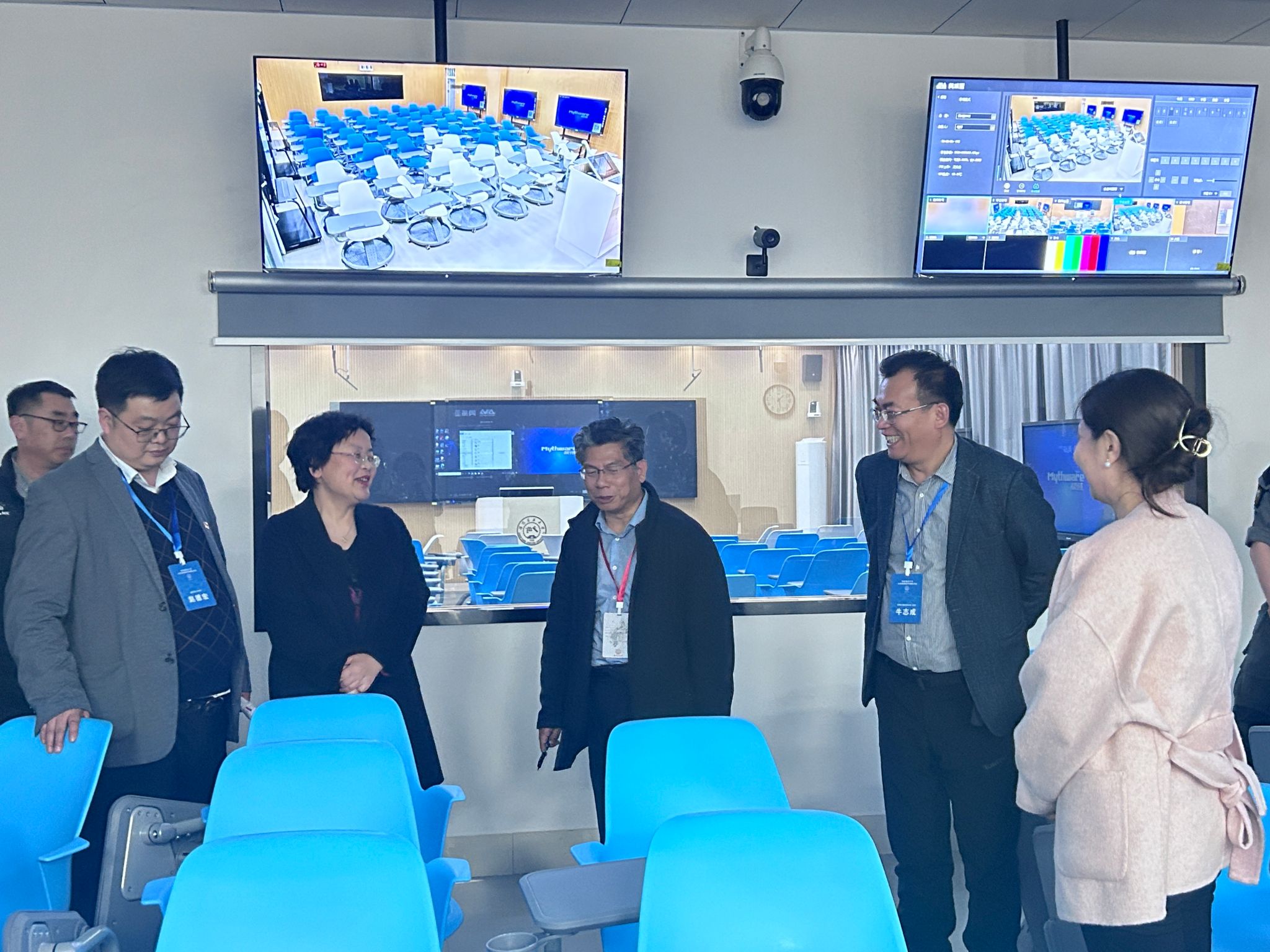 专家在认真听取了学院领导和技术人员有关beat365中文官方网站智慧教室建设情况的汇报后,充分肯定了学院智慧教室的建设成果。此外,还与有关人员就设备功能、管理维护、后期技术支持等方面进行了深入交流。