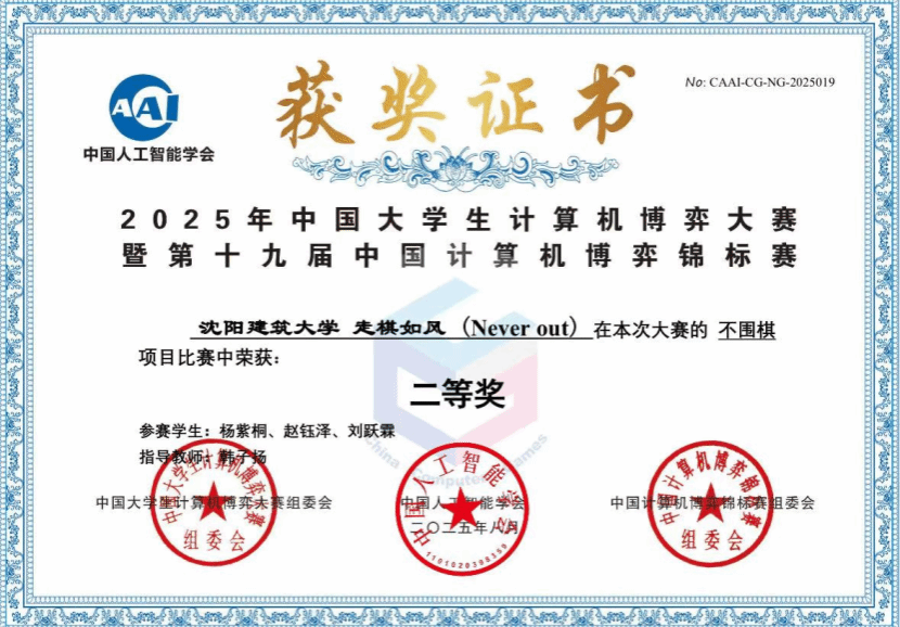 由我院学生杨紫桐、赵钰泽、刘跃霖创作的“沈阳建筑大学走棋如风(Never out)”项目在中国大学生计算机博弈大赛暨第十九届中国计算机博弈锦标赛中获国家级二等奖。他们创新性地运用了智能决策算法与博弈树搜索优化技术,有效解决了传统博弈程序中常见的决策效率低下和局面评估不准确等问题。通过技术创新,团队的博弈程序能够更加“智能”地进行决策,展现出更接近人类思考方式的卓越性能。