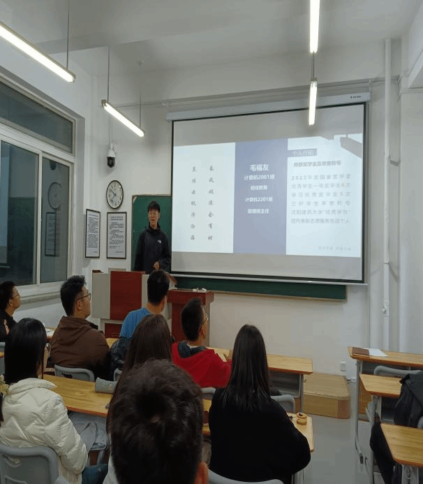 本次学习经验交流会,学院邀请到了计算机科学与工程学院大四学生、国家奖学金获得者毛福友同学。会上毛福友同学结合专业特点,从学习生活、课余生活、研途之旅三方面进行了细致的经验分享。在互动问答环节,新生们提问积极而踊跃,毛福友同学对各个问题给予耐心细致的解答,并提出日常学习中应该注意的事项和细节,现场氛围十分热烈。